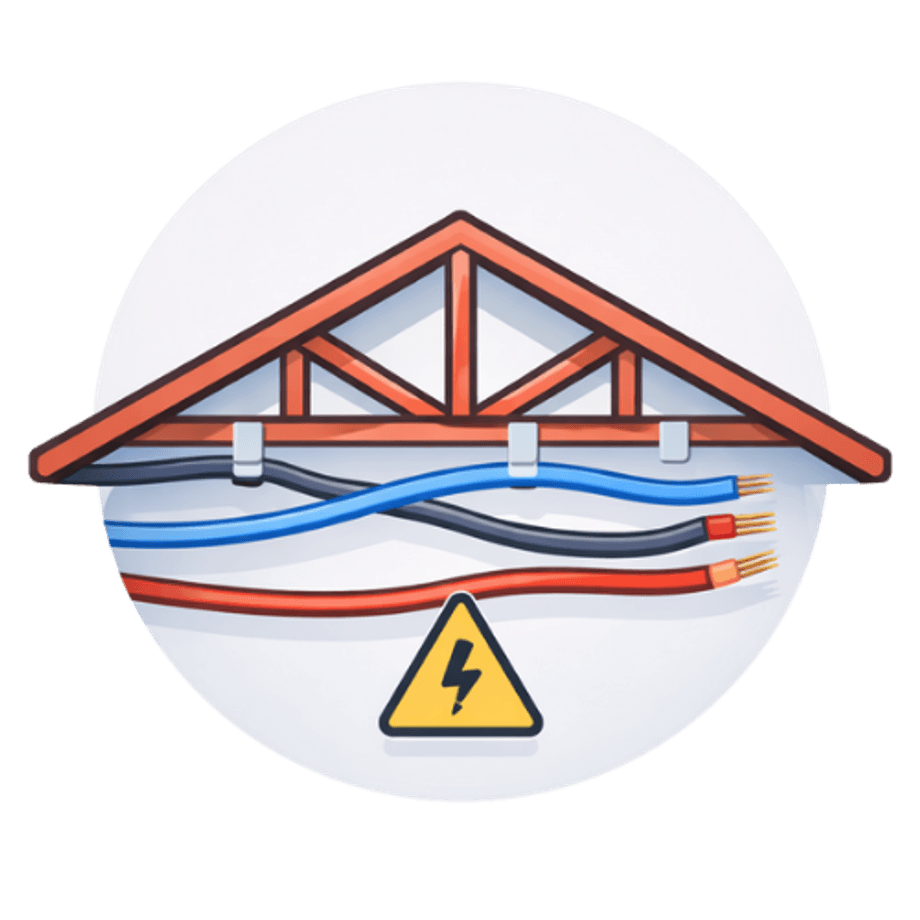 สายไฟจำนวนมากถูกเดินอยู่บนฝ้าผ่านใต้หลังคา หากติดตั้งไม่เรียบร้อย ใช้สายไฟผิดประเภท หรือไม่มีการยึดเกาะที่เหมาะสม อาจเกิดความร้อนสะสมและทำให้เกิดไฟฟ้าลัดวงจรได้ การตรวจใต้หลังคาจึงช่วยลดความเสี่ยงและเป็นการเพิ่มความปลอดภัยให้กับผู้อยู่อาศัยได้ในระยะยาว