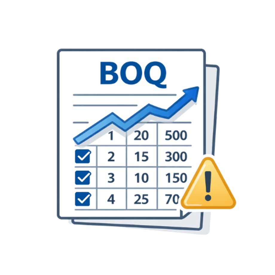 BOQ งานสร้างใหม่มักมีงบประมาณค่อนข้างคงที่หากไม่มีการเปลี่ยนแบบกลางคัน แต่ BOQ รีโนเวทมีความยืดหยุ่นสูง เนื่องจากอาจพบปัญหาเพิ่มเติมระหว่างก่อสร้าง เช่น โครงสร้างชำรุดที่ต้องแก้ไขทันที การวาง BOQ ที่ดีจึงควรมีงบสำรอง (Contingency) เพื่อรองรับสถานการณ์เหล่านี้